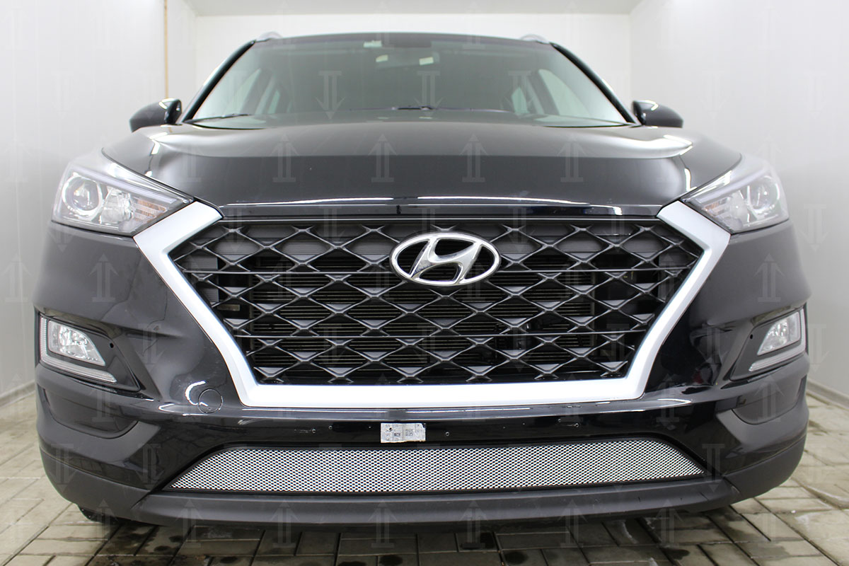 Сетка для защиты радиатора хромированная нижняя привносит удобство и комфорт автовладельцам Hyundai Tucson (Хендай Туссан) с 2018 года выпуска.