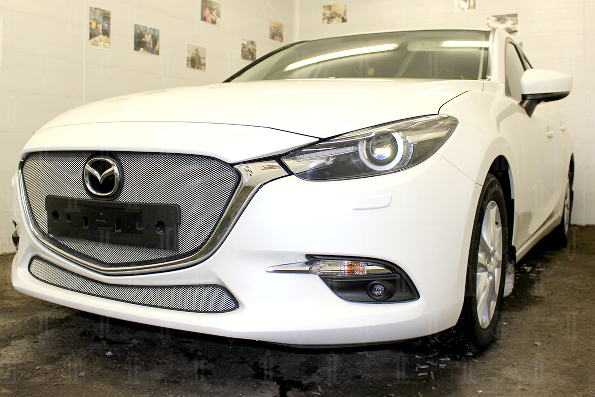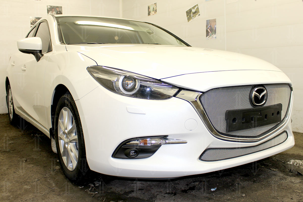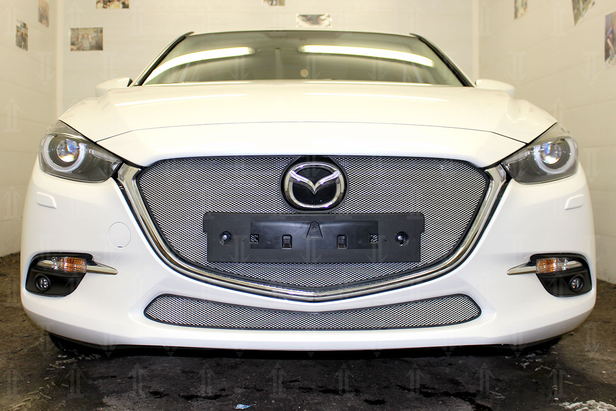 Решетка на радиатор авто хромированная (верх, с рамкой) MAZDA 3 (Мазда 3) с 2016 по 2019 год выпуска производятся по самым строгим стандартам с учетом технических особенностей автомобиля.